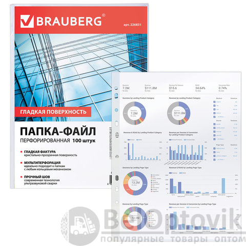 Перфорированные папки-файлы BRAUBERG "STANDARD" предназначены для хранения документов и подходят для подшивки в папки с любым кольцевым механизмом и скоросшивателем.