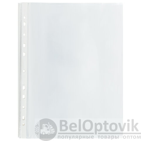 Перфопапки формата А4 с вертикальным размещением содержат универсальную перфорацию, а также имеют гладкую поверхность и прочные швы. Толщина пленки – 45 мкм, что подходит для хранения документов – до 50 листов в 1 папке-файле. В комплекте 100 шт.