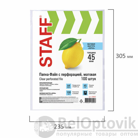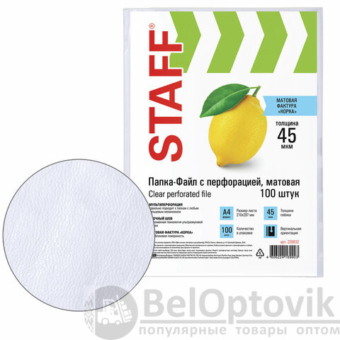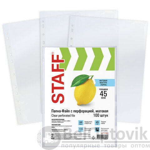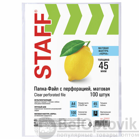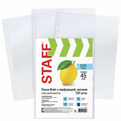 Папки-файлы перфорированные, А4, STAFF "ЭКОНОМ", КОМПЛЕКТ 100 шт., матовые, 45 мкм, 226832