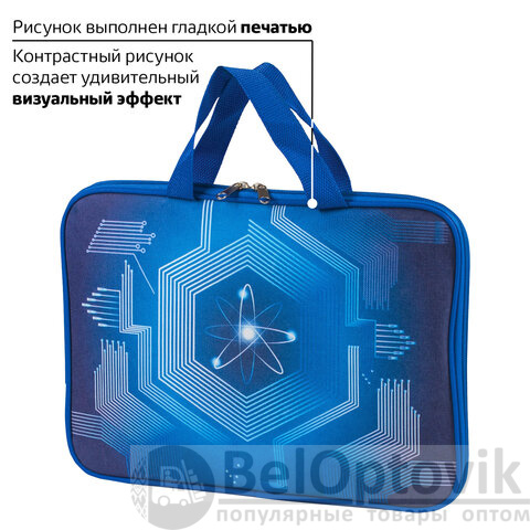 Папка-сумка для тетрадей BRAUBERG "Atom" формата А4 с ручками для переноски. Изготовлена из плотного полиэстера с подкладкой внутри. Одно отделение. Застегивается на молнию. Папка держит форму за счет прорезиненного канта по краям. Яркая цветная печать.