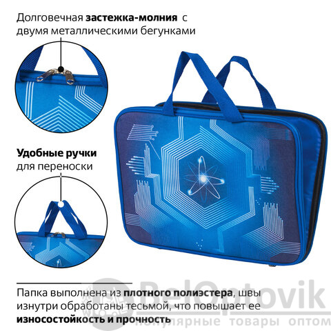 Папка на молнии с ручками BRAUBERG, А4, 1 отделение, с подкладкой, полиэстер, 20 мм, "Atom", 227089