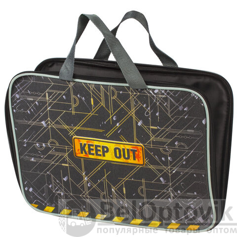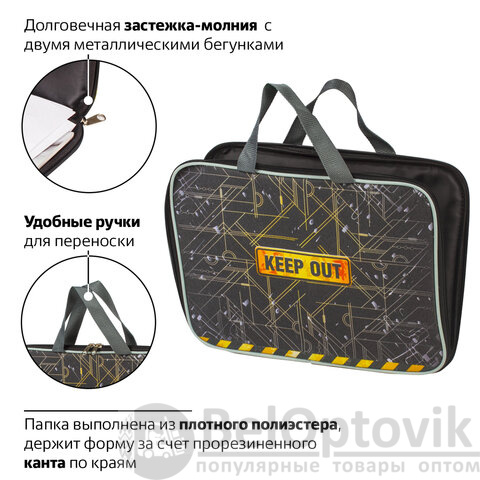 Папка на молнии с ручками BRAUBERG, А4, 1 отделение, с подкладкой, полиэстер, 20 мм, "Keep Out", 227091
