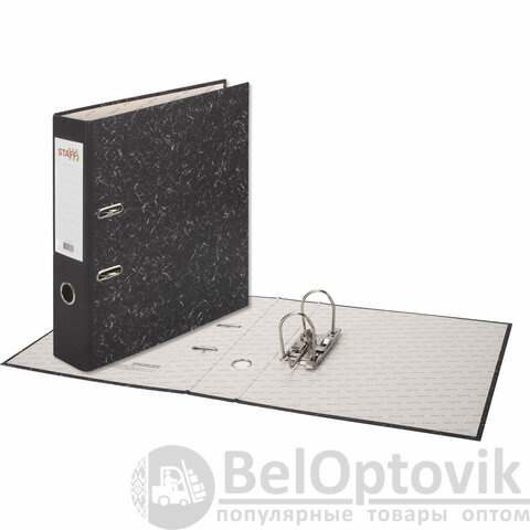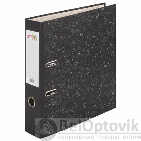 Папка-регистратор STAFF "Basic" БЮДЖЕТ с мраморным покрытием, 70 мм, без уголка, черный корешок, 227185