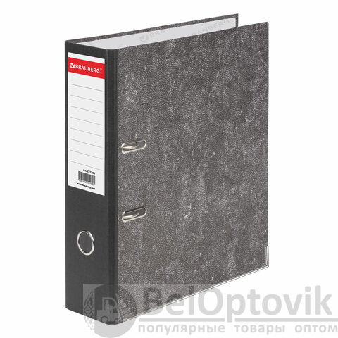 Папка-регистратор BRAUBERG, усиленный корешок, мраморное покрытие, 80 мм, с уголком, черная, 227188