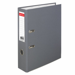 Папка формата А4 с вертикальной ориентацией изготовлена из качественного износоустойчивого картона с ПВХ покрытием. Благодаря такому плотному покрытию допустима влажная уборка изделия. Ширина корешка в 80 мм позволяет разместить до 600 листов. Нижние края папки защищены металлическими уголками, что увеличивает срок службы в 2 раза. Прорези для колец на внешней крышке позволяют оставаться папке закрытой даже при большом количестве бумаг, а надежный арочный механизм легко справляется с ежедневными нагрузками. Корешок снабжен этикеткой для маркировки содержимого, что позволяет структурировать информацию. Такая папка станет незаменимым помощником для работников с документацией, а строгий серый цвет позволит вписаться в офисный интерьер.