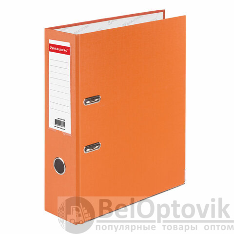Папка-регистратор BRAUBERG с покрытием из ПВХ, 80 мм, с уголком, оранжевая (удвоенный срок службы), 227199