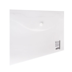 Папка-конверт с гладкой фактурой формата А5 изготовлена из плотного матового полупрозрачного пластика толщиной 180 мкм. Закрывается на защелку-кнопку, что делает удобным частое использование и обеспечивает быстрый доступ к ее содержимому. Папка способна вместить до 100 листов стандартной плотности.