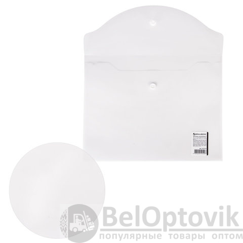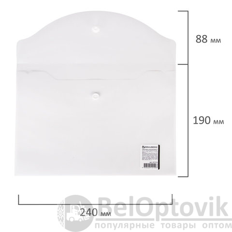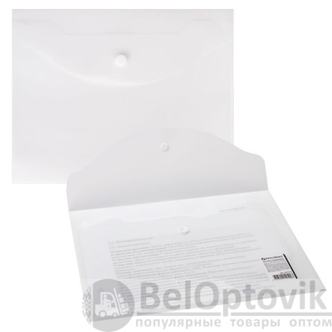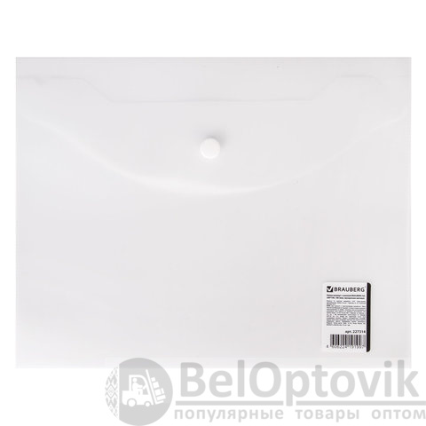 Папка-конверт с кнопкой МАЛОГО ФОРМАТА (240х190 мм), А5, матовая прозрачная, 0,18 мм, BRAUBERG, 227314