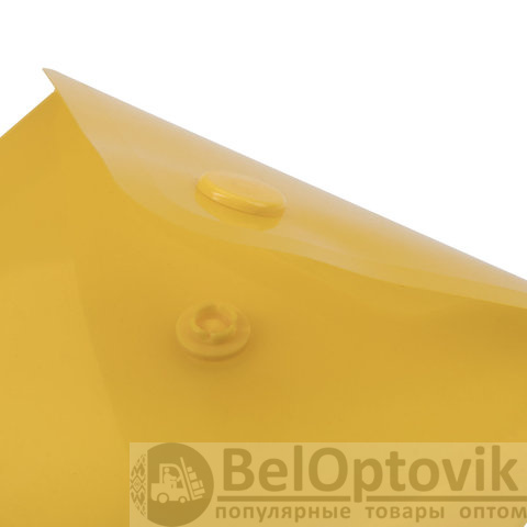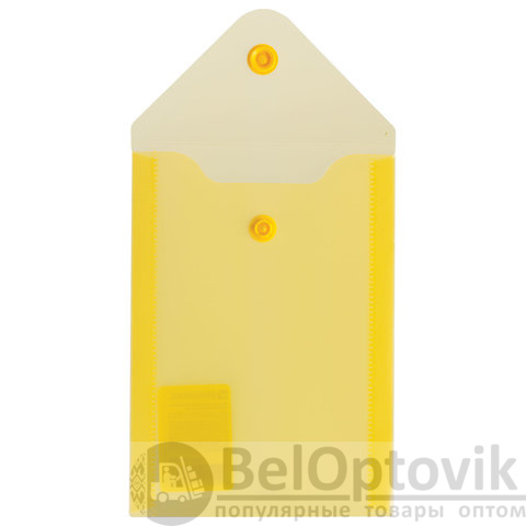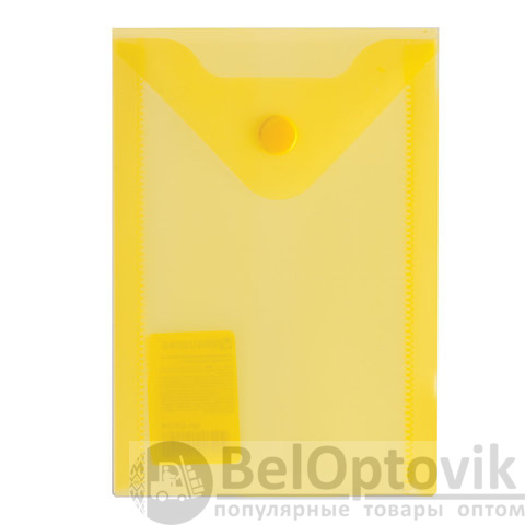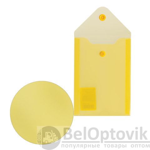 Папка-конверт с гладкой фактурой малого формата А6 изготовлена из плотного прозрачного пластика желтого цвета толщиной 180 мкм. Закрывается на защелку-кнопку, что делает удобным частое использование и обеспечивает быстрый доступ к ее содержимому. Папка способна вместить до 50 листов стандартной плотности.