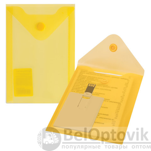 Папка-конверт с кнопкой МАЛОГО ФОРМАТА (105х148 мм), А6, желтая, 0,18 мм, BRAUBERG, 227319