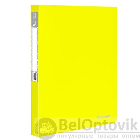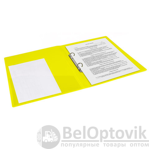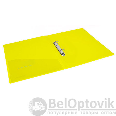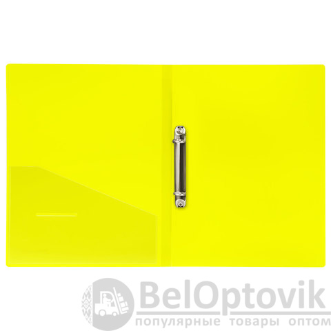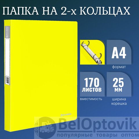 Папка на 2 кольцах BRAUBERG "Neon", 25 мм, внутренний карман, неоновая, желтая, до 170 листов, 0,7 мм, 227457
