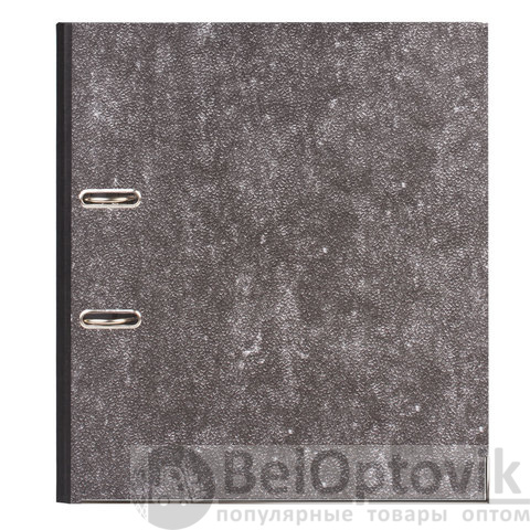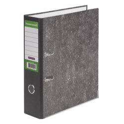 Папка формата А4 с вертикальной ориентацией изготовлена из высококачественного износоустойчивого картона с покрытием под "мрамор". Ширина корешка в 80 мм позволяет разместить до 600 листов. Нижние края папки защищены металлическими уголками, что увеличивает срок службы в 2 раза. Прорези для колец на внешней крышке позволяют оставаться папке закрытой даже при большом количестве бумаг, а надежный арочный механизм легко справляется с ежедневными нагрузками. Корешок снабжен этикеткой для маркировки содержимого, что позволяет структурировать информацию.
