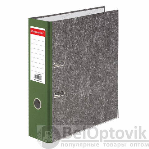 Папка-регистратор BRAUBERG, усиленный корешок, мраморное покрытие, 80 мм, с уголком, зеленая, 228030