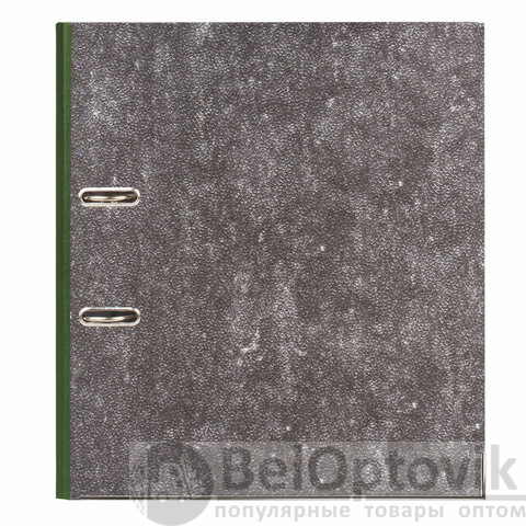 Папка формата А4 с вертикальной ориентацией изготовлена из высококачественного износоустойчивого картона с покрытием под "мрамор". Ширина корешка в 80 мм позволяет разместить до 600 листов. Нижние края папки защищены металлическими уголками, что увеличивает срок службы в 2 раза. Прорези для колец на внешней крышке позволяют оставаться папке закрытой даже при большом количестве бумаг, а надежный арочный механизм легко справляется с ежедневными нагрузками. Зеленый корешок снабжен этикеткой для маркировки содержимого, что позволяет структурировать информацию.