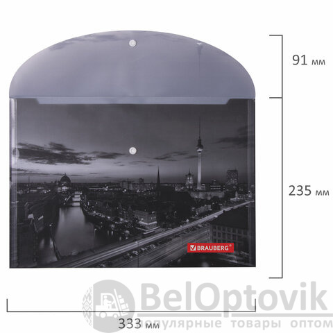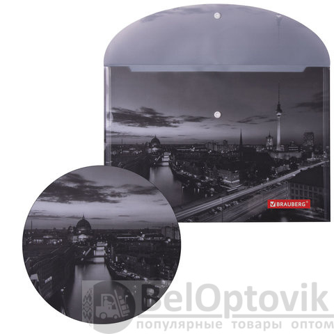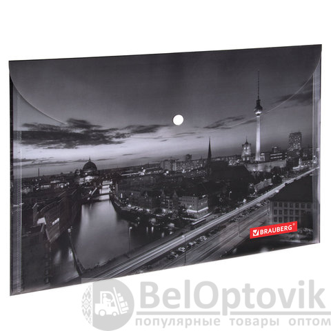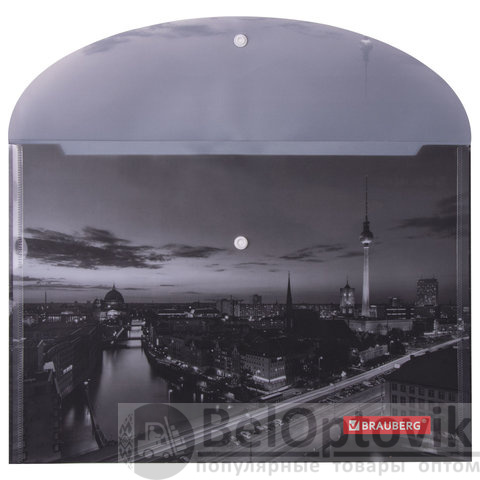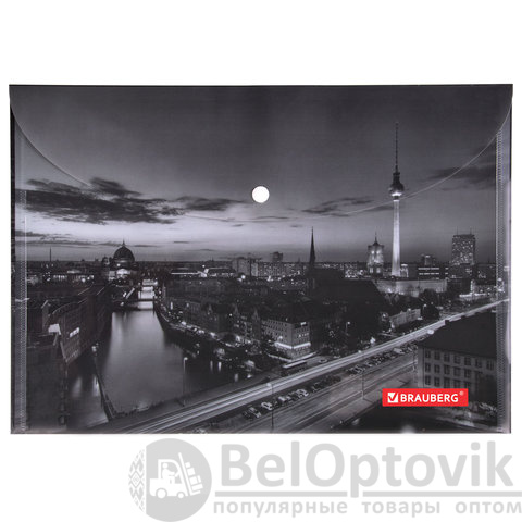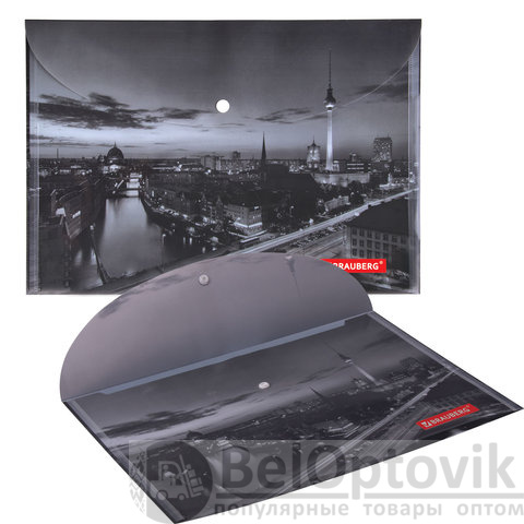 Папка-конверт с кнопкой BRAUBERG "NIGHT CITY", А4, 160 мкм, цветная печать, 228033