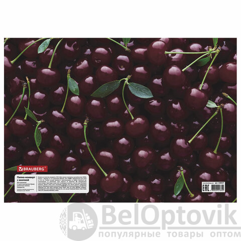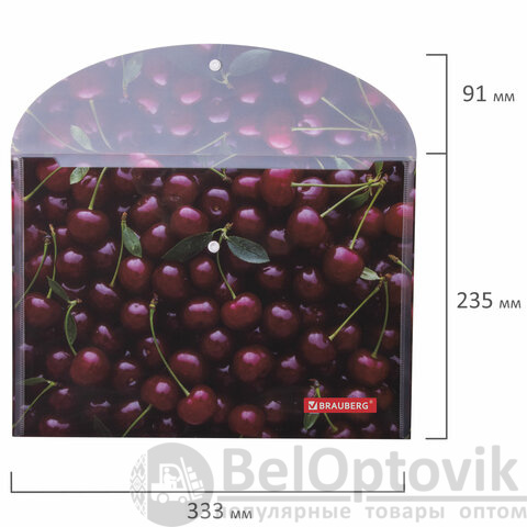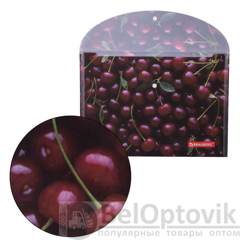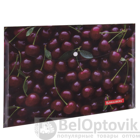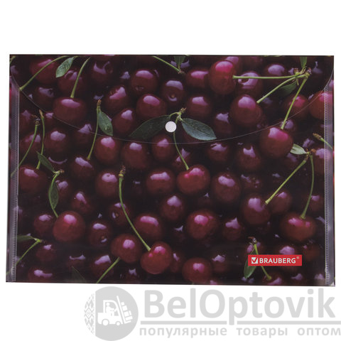 Папка-конверт с кнопкой BRAUBERG "CHERRY", А4, 160 мкм, до 100 листов, цветная печать, 228037