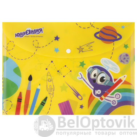 Папка-конверт с кнопкой ЮНЛАНДИЯ - это незаменимый предмет для дошкольников, учащихся в школе и родителей, чтобы сохранить необходимые бумаги.