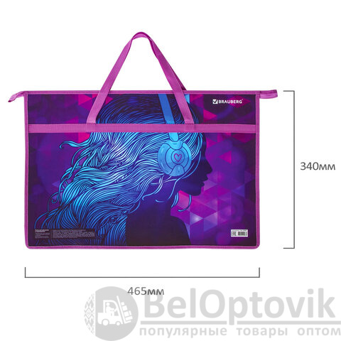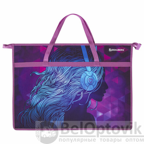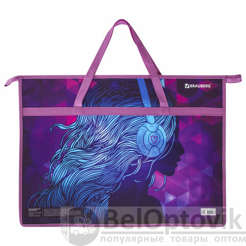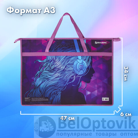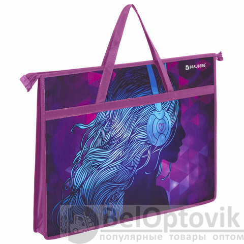 Папка для рисунков и чертежей с ручками BRAUBERG А3, пластик, молния сверху, "Melody", 228201