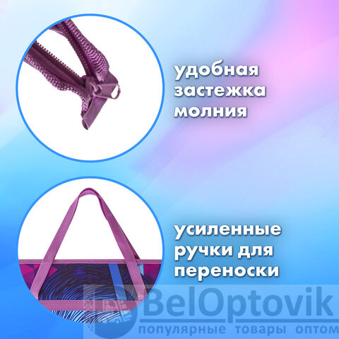 Практичная папка на молнии с ручками защитит чертежи, рисунки и другие художественные изображения формата А3 от смятия и повреждений. Изготовлена из износостойкого пластика, боковины выполнены из прочного полиэстера. Яркая и чёткая печать дизайна нанесена с двух сторон. Размер папки – 340х465 мм, ширина – 50 мм. Широкий формат позволяет разместить внутри канцелярские принадлежности для творчества. Папка оснащена удобной застёжкой-молнией сверху.