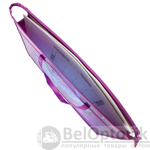 Прочные ручки, изготовленные из тесьмы и надёжно прикреплённые к папке, обеспечивают комфортную переноску даже при большой нагрузке. Индивидуальная упаковка (полиэтиленовый пакет с европодвесом) защищает товар при транспортировке и позволяет удобно разместить его для покупателей.