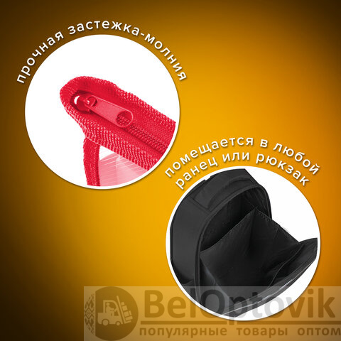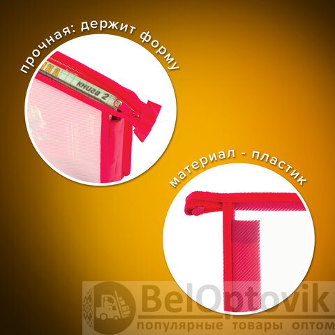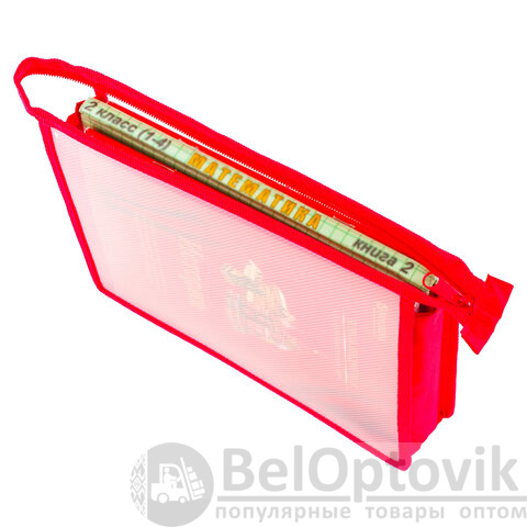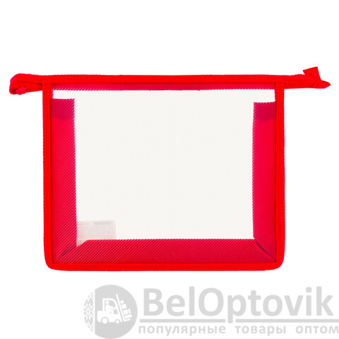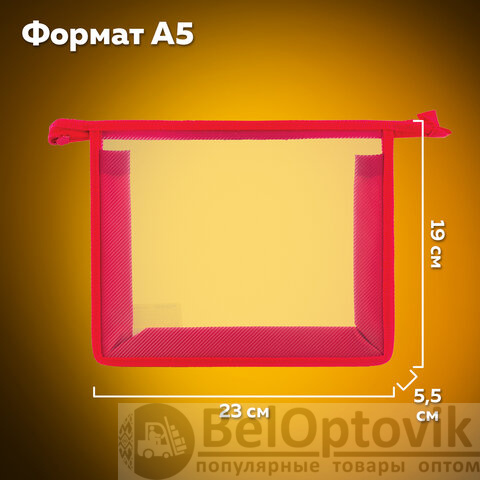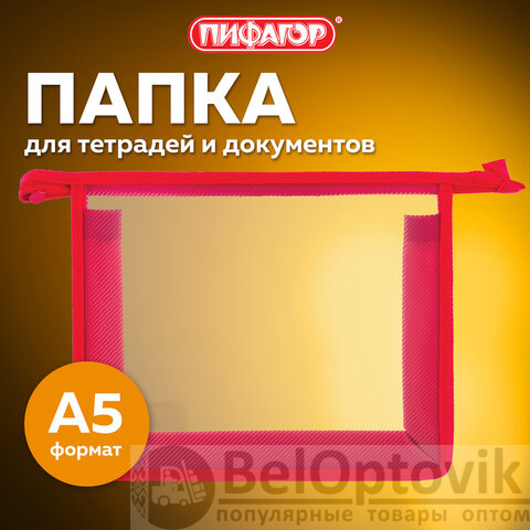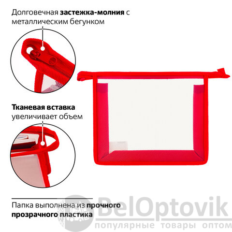 Папка для тетрадей А5 ПИФАГОР, пластик, молния сверху, прозрачная, красная, 228220