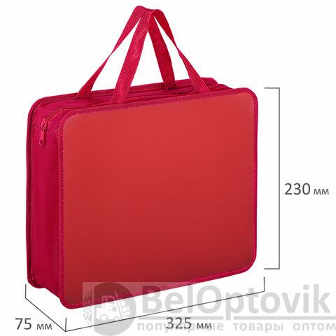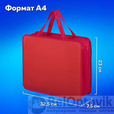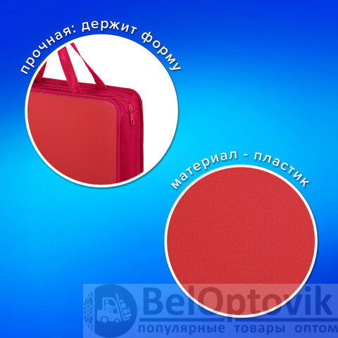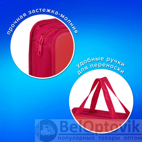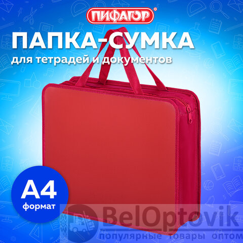 Папка на молнии с ручками ПИФАГОР, А4, 1 отделение, пластик, 75 мм, красная, 228232