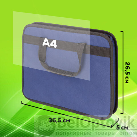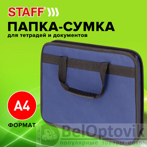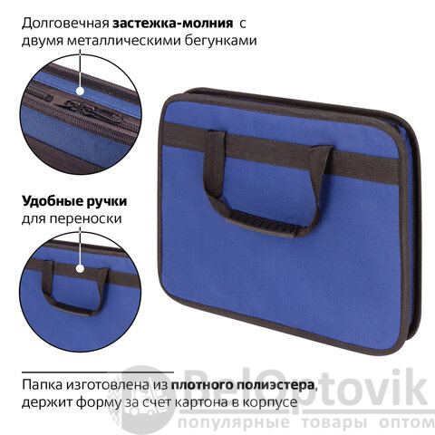 Папка на молнии с ручками STAFF "EVERYDAY", А4, твердые стенки, ткань, синяя, 228345