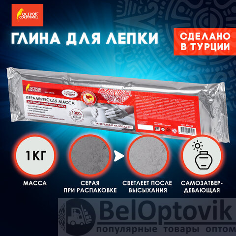 Масса керамическая для лепки ОСТРОВ СОКРОВИЩ, 1000 г, натуральный цвет, 228733