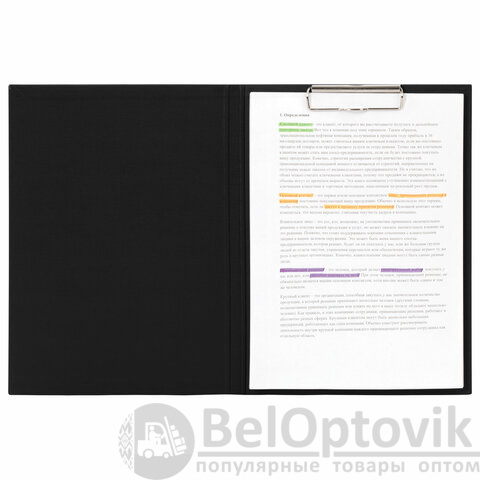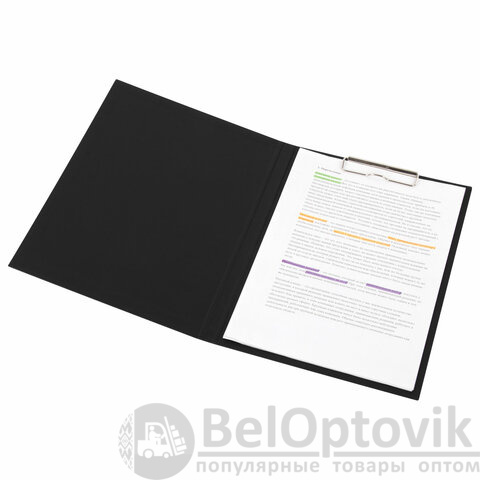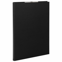 Выполнена из жесткого износостойкого картона с покрытием бумвинил. Металлический прижимной механизм с верхним расположением обеспечит возможность комфортной работы с бумагами на весу, а крышка позволит надежно защитить документы от негативного влияния внешних факторов. Имеет формат А4 (230х314 мм) и фиксирует до 90 листов.