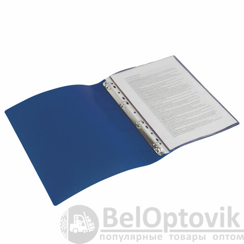 Папка стандартного формата А4 вмещает до 250 листов. Изготовлена из высококачественного пластика толщиной 0,5 мм с классической стандартной фактурой. Допускается влажная обработка поверхности. Ширина корешка составляет 30 мм. Папка оснащена четырьмя кольцами, которые обеспечивают надежное хранение документов. В неё можно вставить файлы или проколотые дыроколом листы и, при необходимости, заменить их на другие. Каждая папка упакована в индивидуальный пакет.