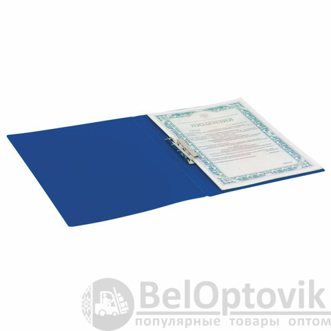 Папка с боковым металлическим прижимом STAFF, синяя, до 100 листов, 0,5 мм, 229232