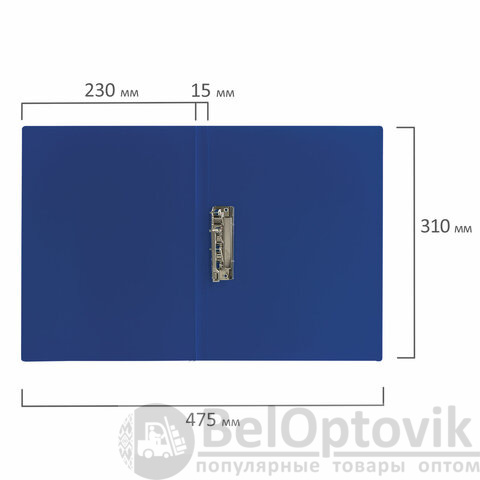 Изготовлена из качественного пластика толщиной 500 мкм с оригинальной фактурой "песок". Обеспечивает хранение до 100 листов формата А4. Снабжена боковым прижимом, который обеспечивает надежную фиксацию документов. Размер - 230х310 мм. Выполнена в синем цвете. Поставляется в индивидуальной упаковке.
