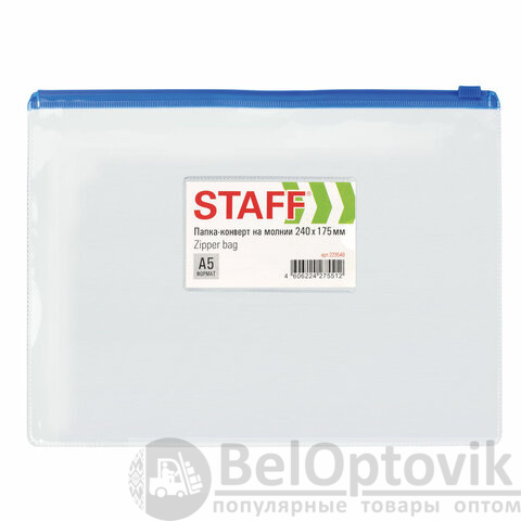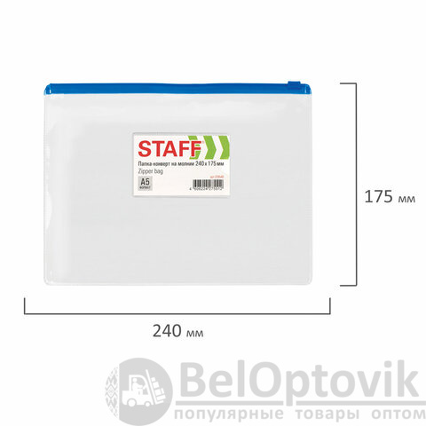 Папка-конверт на молнии STAFF идеально подойдет для хранения и транспортировки важных документов.