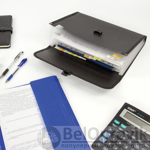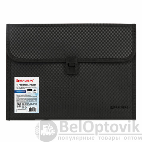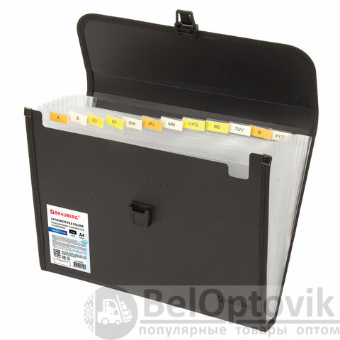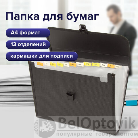 Папка для бумаг и документов с замком и 13 отделениями BRAUBERG "HIT", А4, пластик, черная, 229572