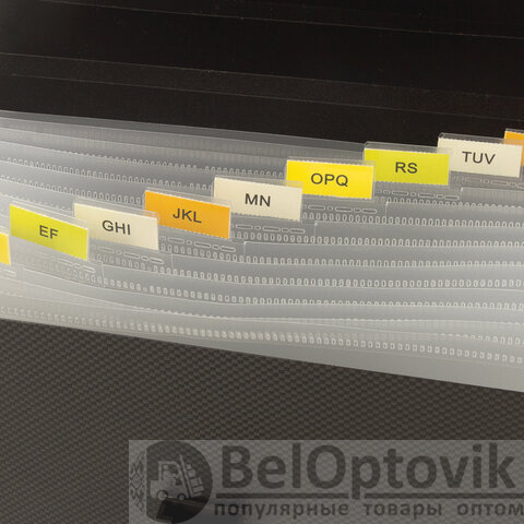 Изготовлена из качественного пластика толщиной 0,7 мм с фактурой под "ткань" и содержит 13 отделений, которые позволяют структурировать документы. Для удобства поиска нужного документа папка формата А4 снабжена индексными ярлыками. Надежный замок плотно закрывают папку, не позволяя содержимому выпасть и защищая от влаги, пыли и прочих механических повреждений. Папка представлена в солидном черном цвете.