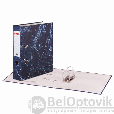 Папка-регистратор STAFF "Basic" БЮДЖЕТ с мраморным покрытием, 70 мм, без уголка, синяя, 229618