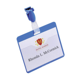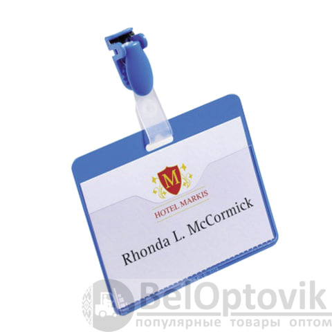 Горизонтальный бейдж для размещения именной карточки. Вращающийся клип делает использование бейджа особенно удобным.