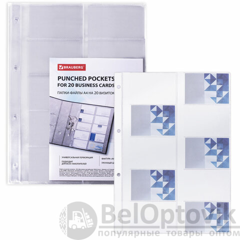 Папки-файлы BRAUBERG предназначены для хранения визитных карточек.