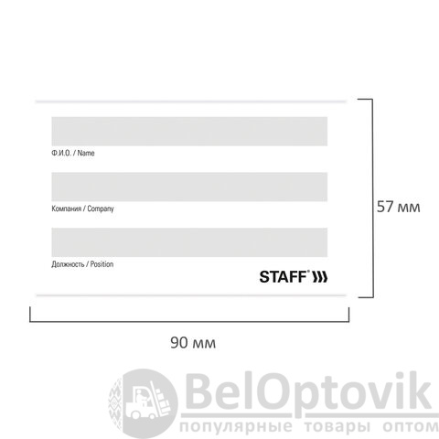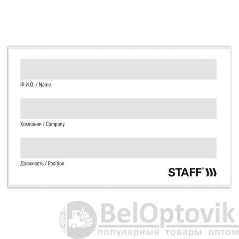 Бюджетный горизонтальный бейдж STAFF подходит для пропуска, визитки, именной карточки. Используется в офисах, на семинарах, тренингах, презентациях и других мероприятиях.
