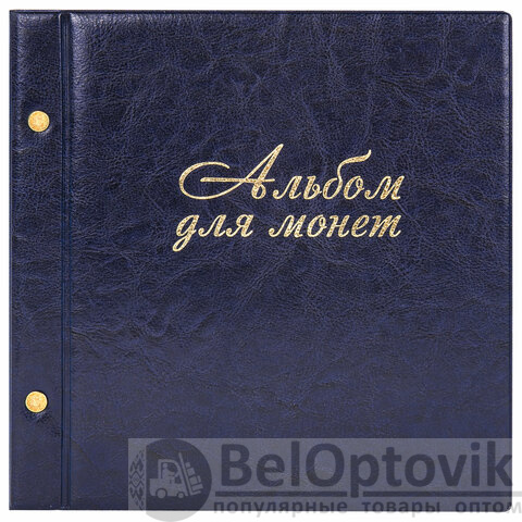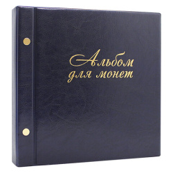 Альбом для монет и купюр на винтах универсальный, 224х224 мм, на 216 монет до D-45 мм, выдвижные карманы, синий, "ДПС", 2855-201
