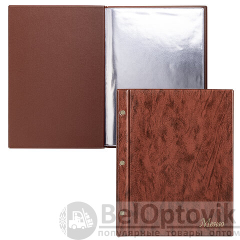 Папка "Меню" на трех винтах, с 10 файлами, 220х320 мм, коричневая, "ДПС", 2273.М-104