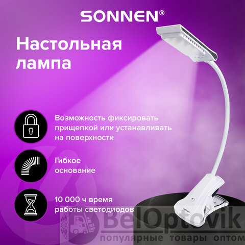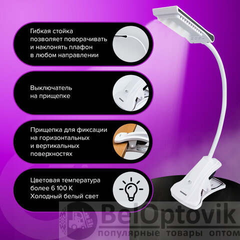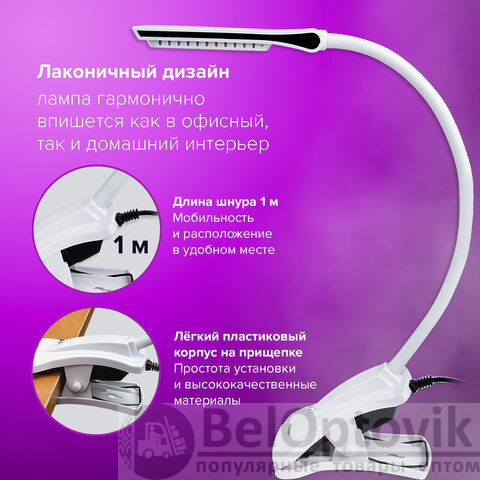 Настольная лампа-светильник SONNEN OU-138, на прищепке, светодиодная, 5 Вт, белый, 236668