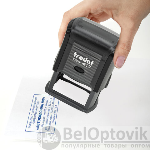 Автоматическая оснастка TRODAT предназначена для наклеивания на нее клише штампа, факсимиле и другой символики. Окрашивание клише и постановка оттиска происходит автоматически при нажатии на оснастку.