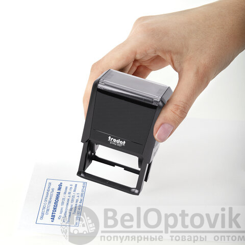 Автоматическая оснастка TRODAT предназначена для наклеивания на нее клише штампа, факсимиле и другой символики. Окрашивание клише и постановка оттиска происходит автоматически при нажатии на оснастку.