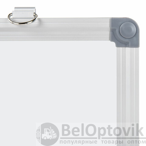 Сухостираемо-магнитная лакированная поверхность, соединенная с пробковой поверхностью без дополнительных элементов. Рамка из алюминиевого профиля с пластиковыми уголками.