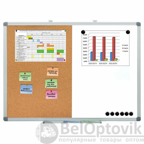 Комбинированная доска BRAUBERG "Extra" - магнитно-маркерная и пробковая доски в единой рамке – оптимальное решение для экономии пространства. Широко используется в организациях разного рода деятельности.