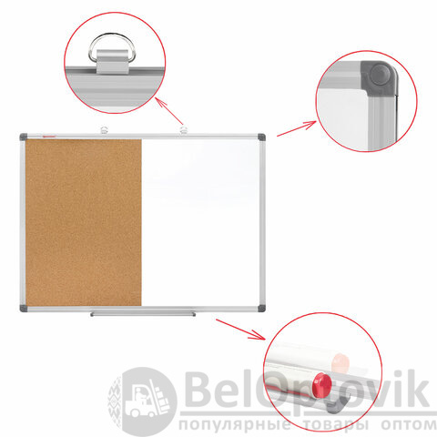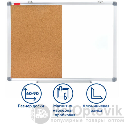 Доска комбинированная: магнитно-маркерная, пробковая для объявлений, 60х90 см, BRAUBERG "Extra", 237566