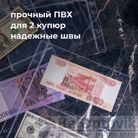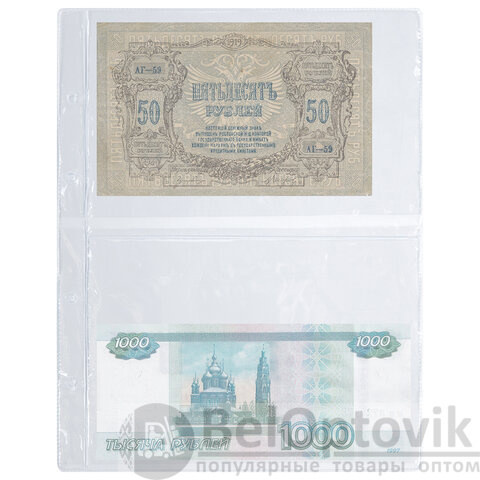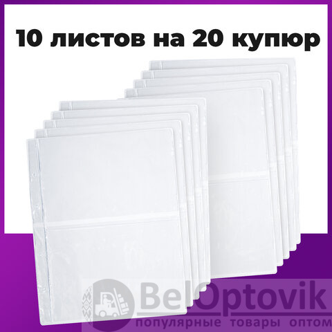 Листы-вкладыши для альбома "OPTIMA" на 2 боны (купюры), КОМПЛЕКТ 10 шт., 200х250 мм, ПВХ, STAFF, 238081