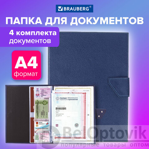 Папка-органайзер для семейных документов BRAUBERG синего цвета. Незаменима для хранения самых важных документов в одном месте.