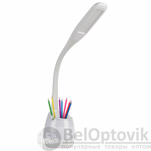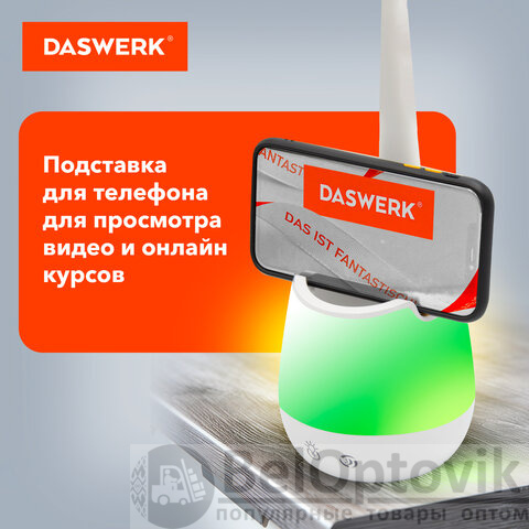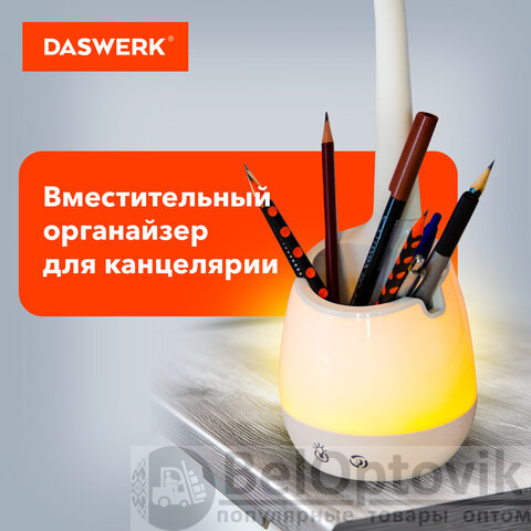 Настольная лампа светильник с органайзером и держателем для телефона, "4 в 1", LED, 5 Вт, белый, DASWERK, 238326